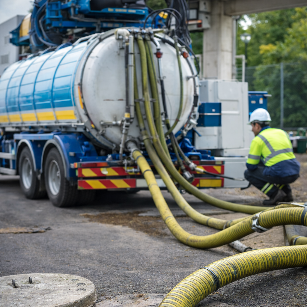 Serviço completo de esgotamento de fossas sépticas e sistemas sanitários, com transporte e destinação final adequada.
